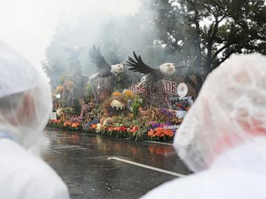 Rained poured down on the iconic Rose Parade for the first time in 20 years