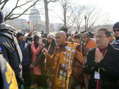 Buddhist monks walk to US Capitol on final day of their 15-week journey from Texas